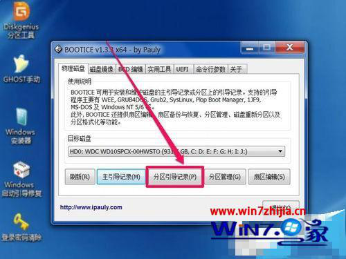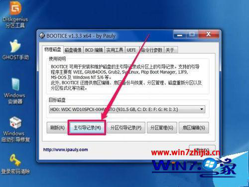 4、選擇好硬盤后,在下面,點擊“主引導記錄”這個按鈕;