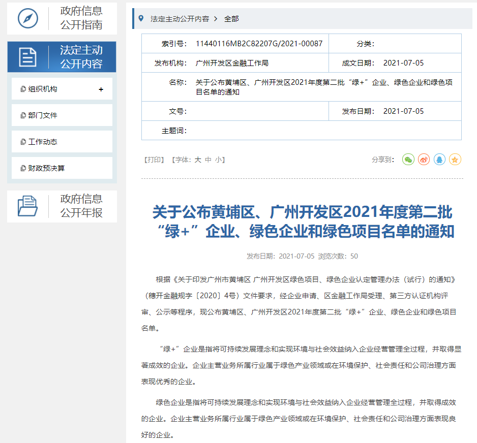 根據(jù)《關(guān)于印發(fā)廣州市黃埔區(qū) 廣州開發(fā)區(qū)綠色項(xiàng)目、綠色企業(yè)認(rèn)定管理辦法(試行)的通知》(穗開金融規(guī)字〔2020〕4號(hào))文件要求,經(jīng)企業(yè)申請(qǐng)、區(qū)金融工作局受理、第三方認(rèn)證機(jī)構(gòu)評(píng)審、公示等程序,現(xiàn)公布黃埔區(qū)、廣州開發(fā)區(qū)2021年度第二批“綠+”企業(yè)、綠色企業(yè)和綠色項(xiàng)目名單。